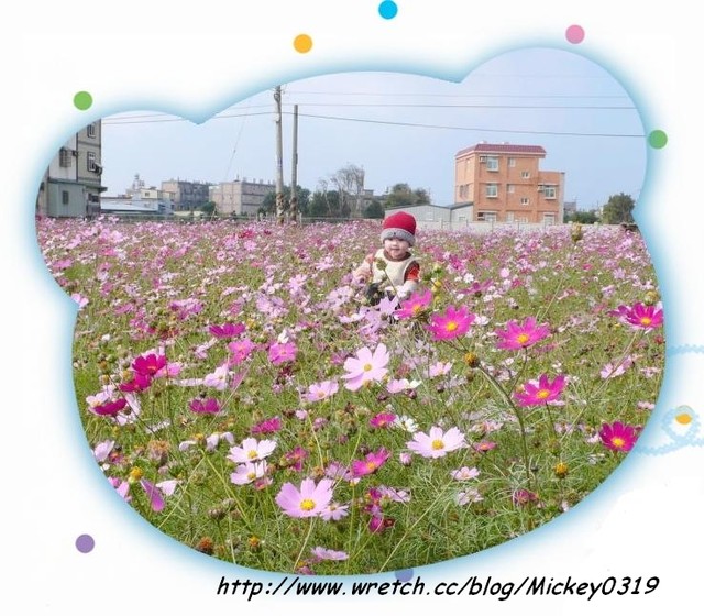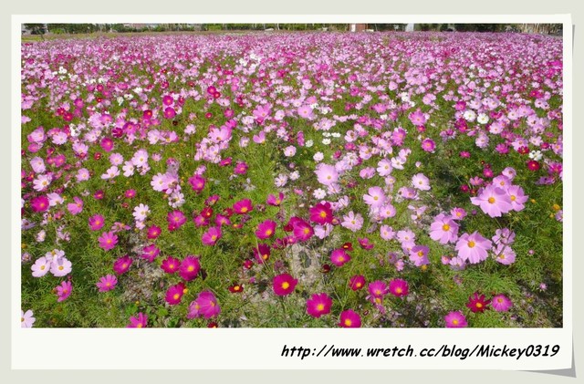 這裡的波斯菊有全白,粉色,桃紅,粉+桃紅各半,綜合色花海.....隨處可見