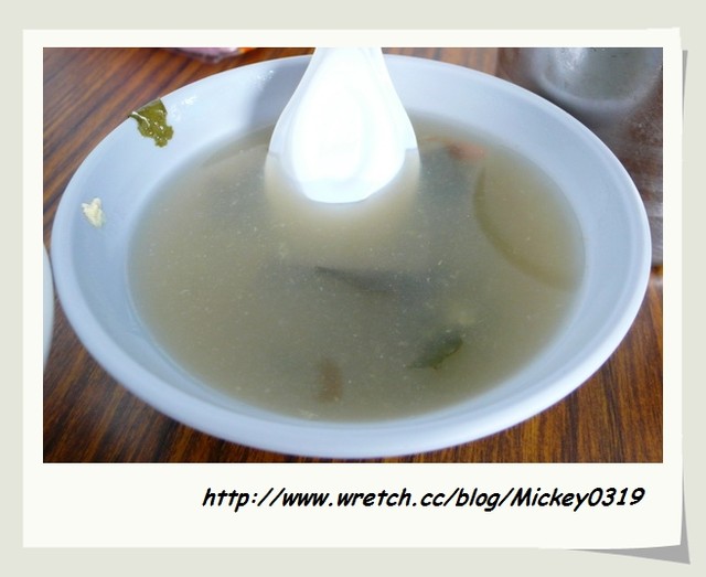 店內免費提供的海帶蛋花湯,撈得到料喔!