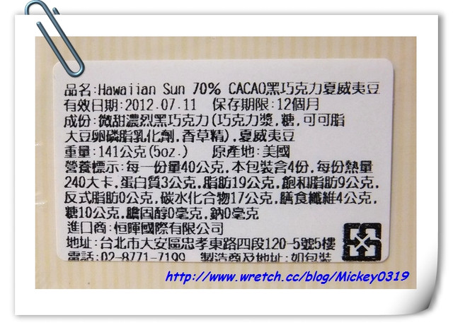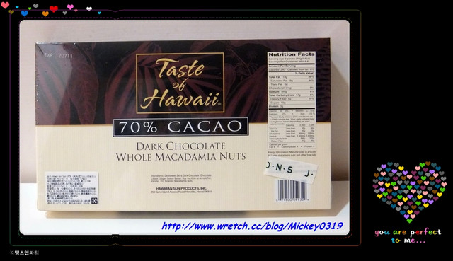 這盒是Hawaiian Sun 70% CACAO黑巧克力夏威夷豆