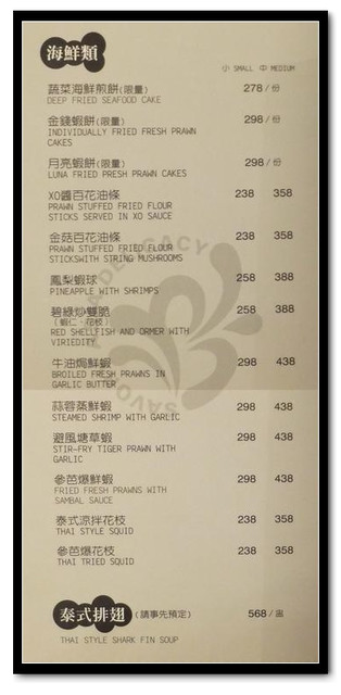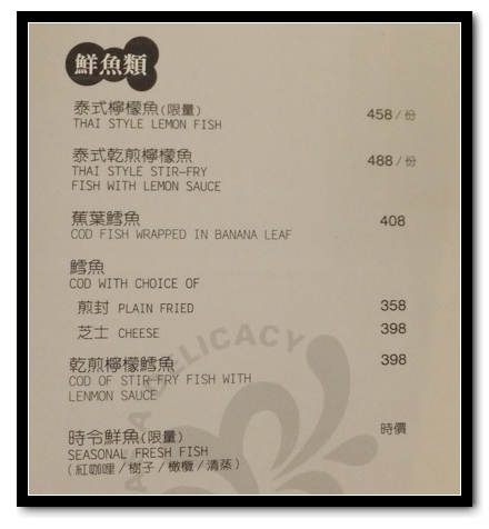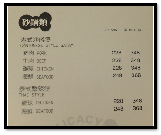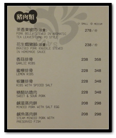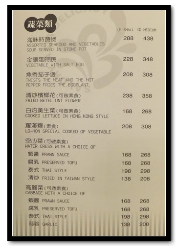 MENU 內容共分為十大類,菜色可說是相當豐富